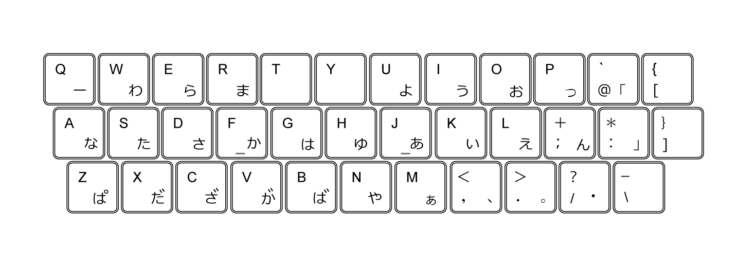 当時はキーボード配列に関する知識がまったくなかったので、順番にかなを並べていきました。